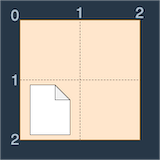 파일들은 바탕화면의 격자칸에 위치하고 바탕화면의 격자점들은 바탕화면의 가장 왼쪽 위를 (0, 0)으로 시작해 (세로 좌표, 가로 좌표)로 표현합니다.
